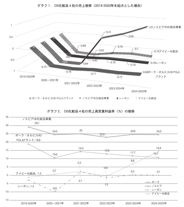 各社の売上高の推移をみてみると、ノエビアを除く3社は、コロナ禍前の2019年〜2020年を起点とした場合、その後4年間において、コロナ禍前の水準に戻っていない。ダイレクトセリング化粧品分野では全般的にコロナ禍における打撃から脱却を果たしつつあるものの、その影響は未だに大きい。コロナ禍でこのビジネスの強みである直接対面によるカウンセリング、販売ができなくなったことは、その後の消費者の価値観・ライフスタイルの変化と相まって、事業者側にも従来とは異なる戦略が求められるようになっている。