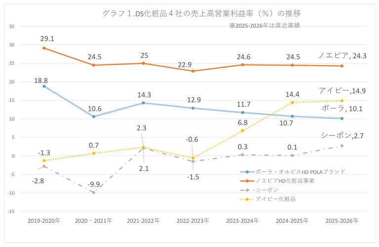 DS化粧品4社の直近業績 強まる高付加価値路線