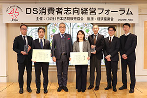 表彰式は、同8日の第3回ダイレクトセリング消費者志向経営フォーラム(会場=明治記念館、経済産業省後援)で実施。カスタマーハラスメントをテーマに、委員でもある松本恒雄一橋大学名誉教授が講演し、同じく委員の柴田純男氏(柴田CSマネジメント)とトークセッションを行った。