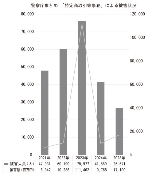 25年の「特定商取引等事犯」被害・検挙状況 訪販被害2.3倍の165億円、全体の97%占める