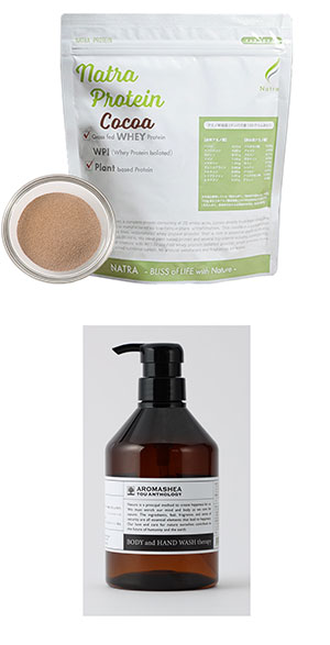 数量限定の製品は、@プロテイン食品「ナトラプロテイン」(450グラム、会員価格6480円)のココア味とAスキンケアライン「アロマシア」のボディ&ハンドウォッシュ(500ミリリットル、同4200円)。